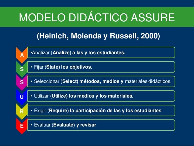 El modelo ASSURE, basado en gran medida en las categorías de Robert Gagnè, para asegurar el uso efectivo de los medios de instrucción, es básicamente un proceso modificado para ser usado en el salón de clase por los maestros. Sus siglas son una combinación de la primera letra de las palabras en inglés, que se convierten en los seis pasos de este modelo didáctico: